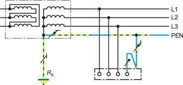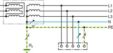 在TN系統(tǒng)中,一點直接接地并且電氣裝置的裸露導(dǎo)電部分通過保護接地線連接到這一點。