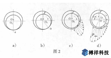圖2 中a 是靜止?fàn)顟B(tài)時(shí)軸和軸承的情況。b 是當(dāng)軸從靜止?fàn)顟B(tài)開(kāi)始旋轉(zhuǎn)時(shí),軸按圖中方向向b 點(diǎn)爬行,此時(shí)系統(tǒng)還不具備形成承載動(dòng)力油膜的條件。摩擦表面主要依靠邊界膜保護(hù),故摩擦因數(shù)較***。c 是隨著轉(zhuǎn)速的提***,卷入的潤(rùn)滑油增多,從而形成一定的油膜壓力迫使軸向左方移動(dòng),軸的表面逐漸與軸承表面隔離,摩擦因數(shù)急劇下降是為混合潤(rùn)滑狀態(tài)。d 是軸的轉(zhuǎn)速進(jìn)一步提***后,動(dòng)力油膜充分形成,表面完全隔開(kāi),摩擦力只是油膜的分子之間的阻力。摩擦因數(shù)降至***低,這便是流體動(dòng)力潤(rùn)滑。此后,轉(zhuǎn)速再增***時(shí),剪切速度增大,摩擦因數(shù)又會(huì)緩慢上升。