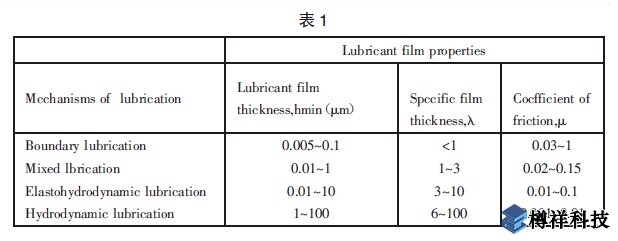 如果將圖4 數(shù)值化則可成表1,見(jiàn)圖5。表1 中給出了各種潤(rùn)滑狀態(tài)下典型的油膜厚度hmin,比膜厚λ 和摩擦因數(shù)μ。1.邊界潤(rùn)滑從使用壽命、可靠性、節(jié)約能源,降低材料消化等方面來(lái)看。