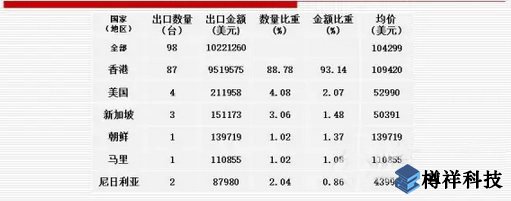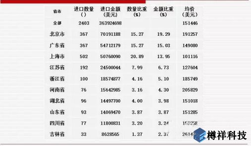其中:美***是進(jìn)口數(shù)量***多、進(jìn)口金額******的******(進(jìn)口1006臺(tái)、11193.00萬(wàn)美元,均價(jià)111262美元),新加坡的進(jìn)口數(shù)量和進(jìn)口金額均列第二(進(jìn)口580臺(tái)、9992.04萬(wàn)美元,均價(jià)172276美元);上海市的進(jìn)口數(shù)量***多(進(jìn)口502臺(tái)、同比上升30.73%,均價(jià)101116美元),北京市的進(jìn)口金額******(進(jìn)口7019.12萬(wàn)美元、同比上升54.90%,均價(jià)191257美元)。