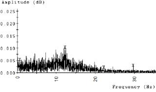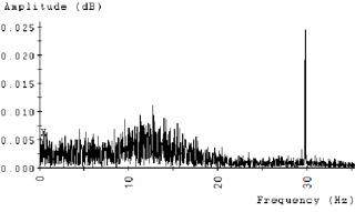 如果出現(xiàn)問題,也會在頻譜中找到驅(qū)動和驅(qū)動速度。與振動一樣,1倍轉(zhuǎn)速意味著對機器的不平衡影響。在圖4中,風扇速度顯示剛好超過25 Hz。在圖5中,運行速度為1,800RPM泵電機可以在低于30 Hz的頻率下識別。在這兩種情況下,趨勢這些峰值的幅度可以告訴我們很多關(guān)于機器狀況的事情。通常,該峰值將處于或接近頻譜的本底噪聲。振幅將在直接驅(qū)動泵組件上爬升的兩個***常見原因是由于未對準或耦合損壞。