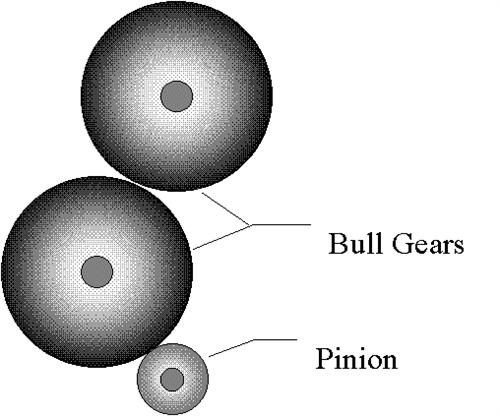 幾個月前,我被要求幫助診斷與造紙業(yè)有關(guān)的大型工廠中的可疑變速箱問題。有問題的變速箱有一個帶有23齒小齒輪的輸入軸,驅(qū)動一個帶有132個齒的大齒輪,這又可以驅(qū)動另一個相同尺寸的大齒輪。兩個齒輪連接到直徑約24英寸的大鋼輥。兩個輸出齒輪轉(zhuǎn)速為52 rpm,小齒輪轉(zhuǎn)速為302 rpm(見圖1)。