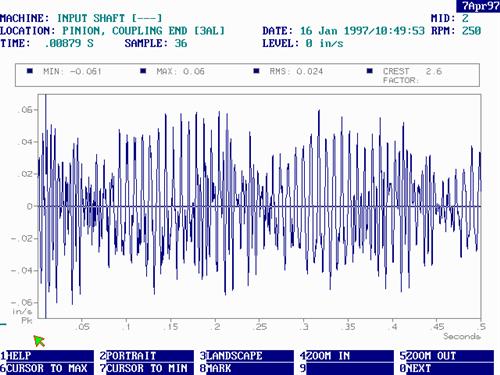 時域信號的同步平均已經(jīng)存在了很長時間,但在我看來,還沒有被用于機(jī)器問題診斷。無論如何,我們決定對變速箱振動特征進(jìn)行同步平均。這涉及在振動分析儀中使用轉(zhuǎn)速計衍生的同步觸發(fā)器來收集一起平均的一系列波形樣本。其中重要的部分是每個時間記錄的開始必須在所討論的齒輪的旋轉(zhuǎn)中完全同時發(fā)生。